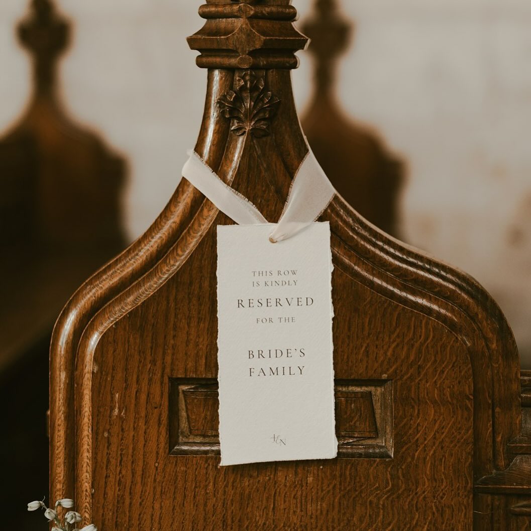 A delicate fabric seating tag, ensuring a special place for your loved ones on your big day.